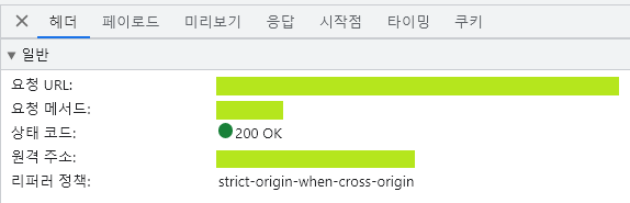 아래 이미지를 보자. 개발자 도구 > 네트워크 탭에서 만날 수 있는 헤더 탭의 리퍼러 정책.